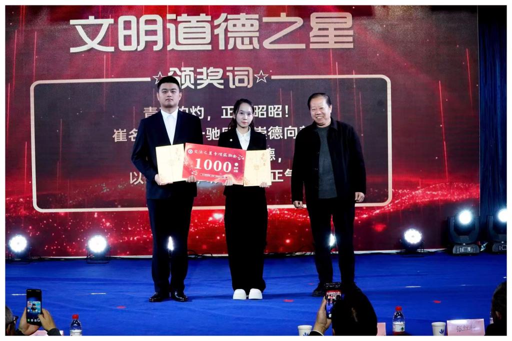 大会依次表彰了在各个领域表现卓越的个人与集体,崔名淑、王一驰同学荣获“文明道德之星”;