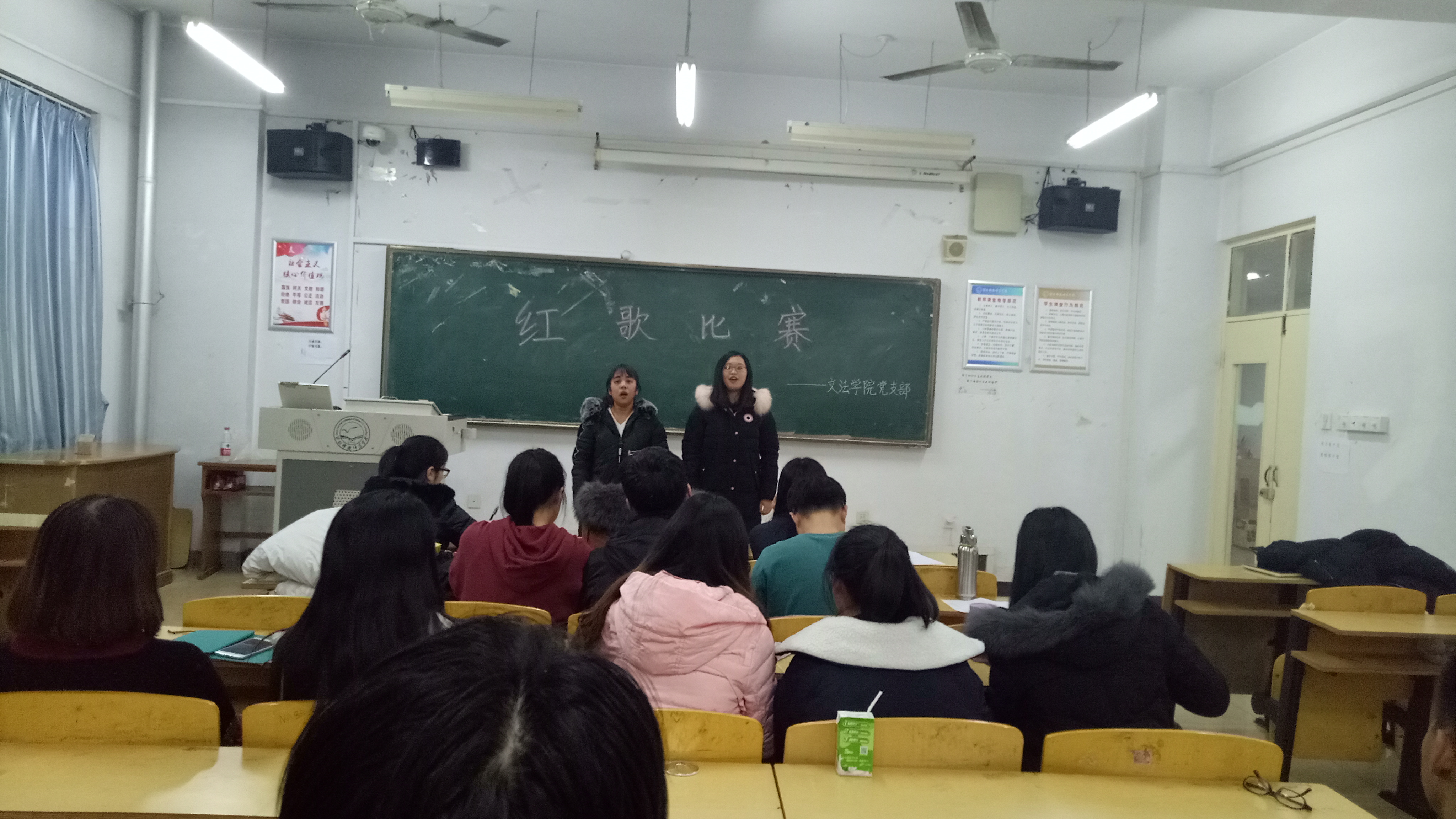 为庆祝党的十九大胜利召开,以文艺的形式宣传十九大精神,唱响主旋律,文法公司党支部于2017年12月27日晚七点在613举办致初心红歌比赛活动,tyc33455cc太阳集团大二大三所有党员参加了此次活动。
