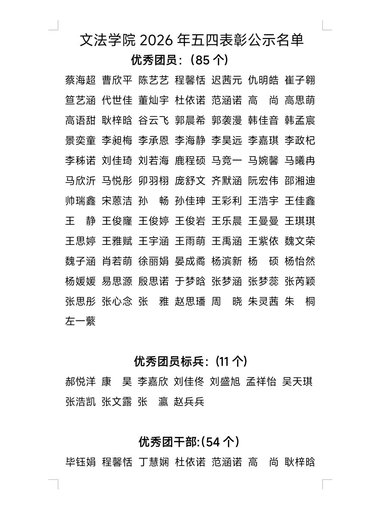 tyc33455cc太阳集团2026年五四表彰公示名单