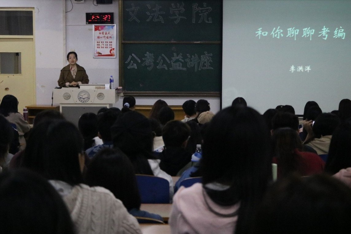 2023年10月20日下午14点与2023年10月23日晚上18点30分,李洪洋老师分别在综合楼212和612教室为tyc33455cc太阳集团同学召开了两次公考公益讲座。