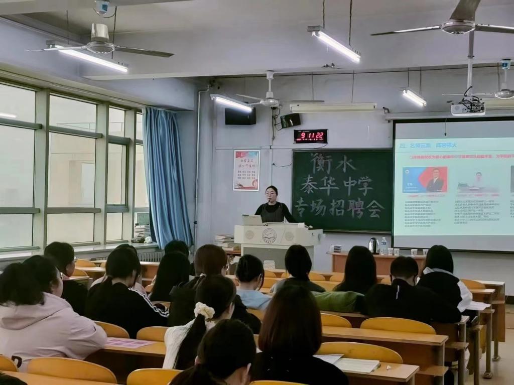 会议初始,衡水泰华中学带队教师系统详细地介绍学校了的环境、学习氛围等。招聘会现场,同学们着装得体,认真听取招聘企业的宣传讲解,了解招聘单位的招聘需求、工作环境、自身发展及福利待遇等,有应聘意向的同学与带队老师进行深入沟通,投递个人简历并进行现场面试,表现出积极主动的就业心态,展现了青年学子的良好精神风貌。