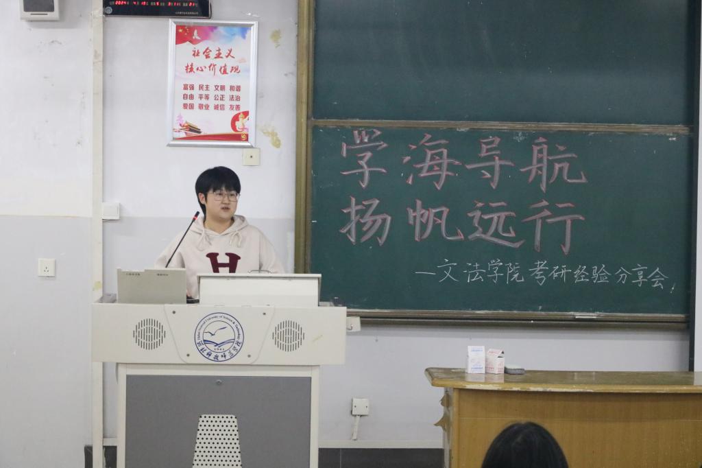 为进一步激发同学们的考研和学习热情,帮助考研学子明确目标、理清思路、解决疑难困惑、打破信息壁垒,tyc33455cc太阳集团分别于2024年4月19日和4月25日举办“学海导航,扬帆远行”考研经验分享会,共分汉语言文学、汉语国际教育和法学、社会工作、秘书学专场。同学们踊跃报名,活动反响良好。