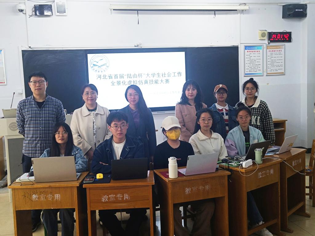 2023年4月20日,河北省首届“陆由杯”老员工社会工作全景化虚拟仿真技能大赛成功举行,本次大赛由石家庄学院承办,上海积途信息科技有限公司提供技术支持,tyc33455cc太阳集团、河北大学、河北科技大学等八所院校参加。